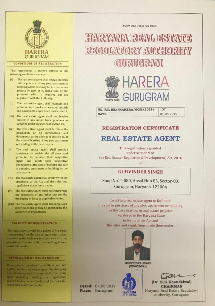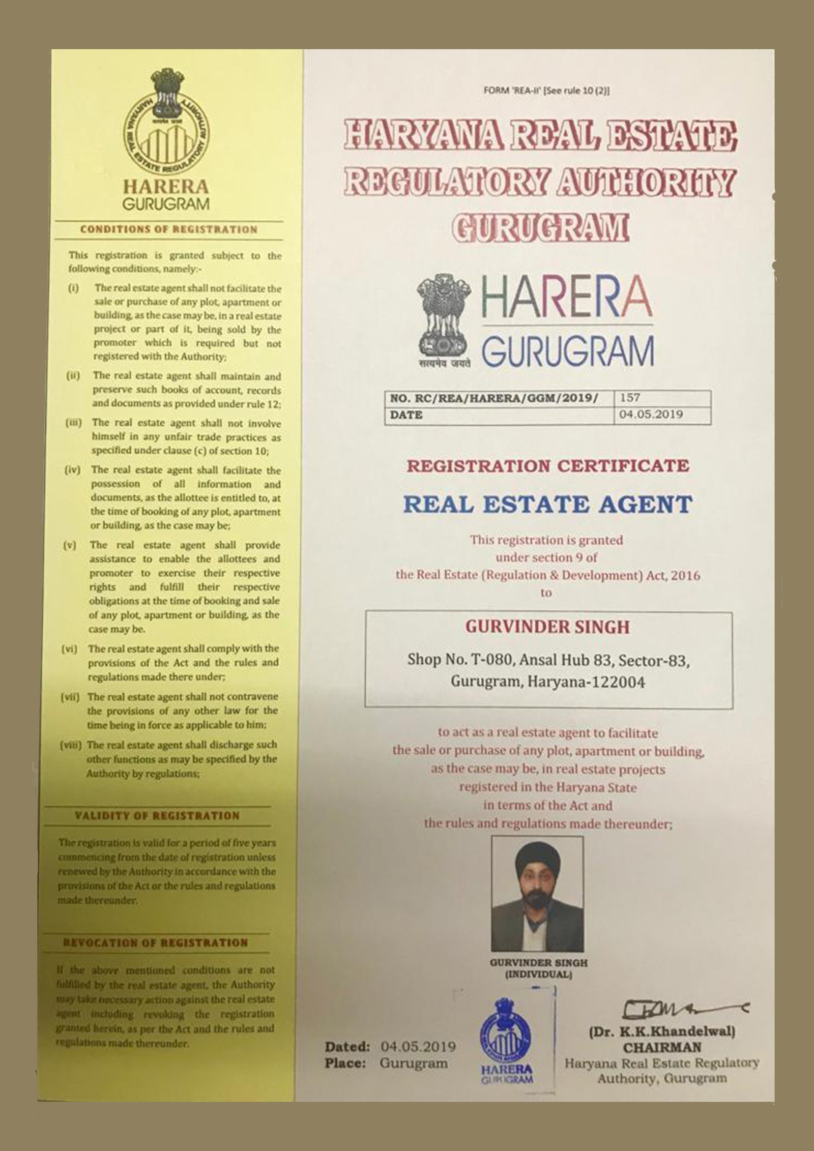 Real Estate Authorised Agent By HARERA GURUGRAM GOV.